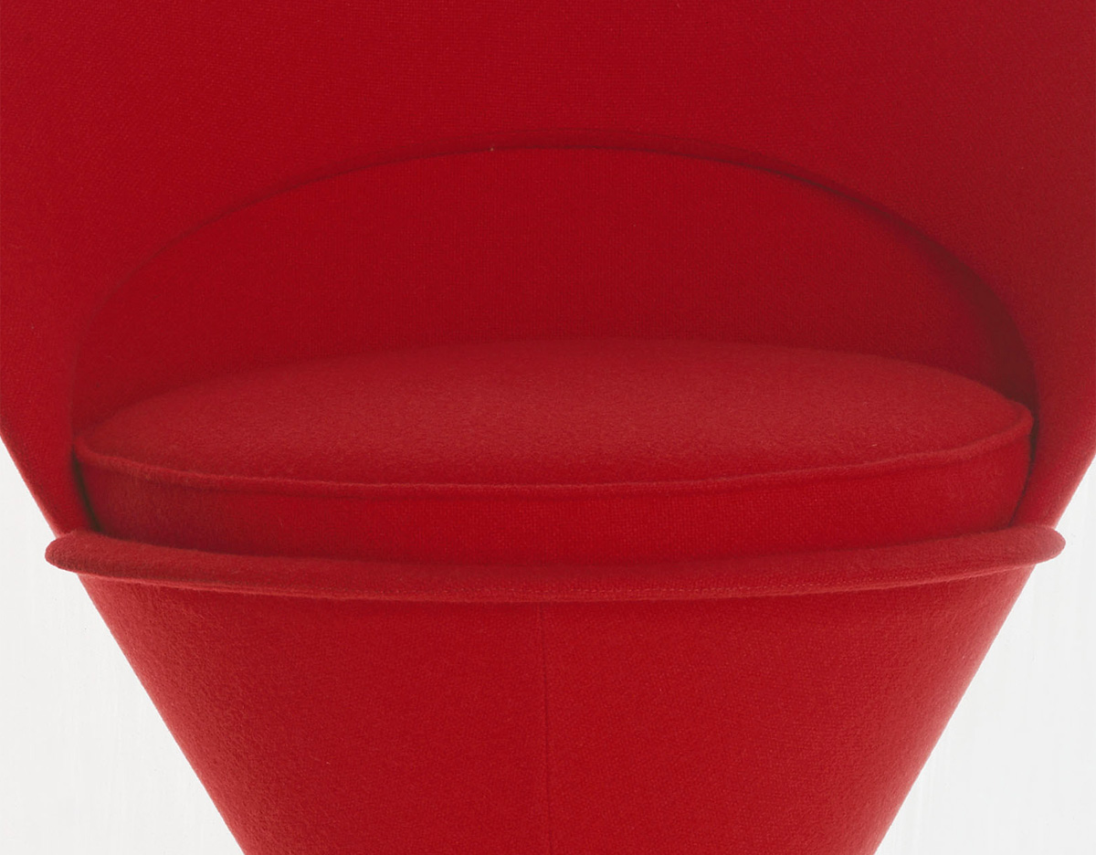 Cone Chair 讓 Verner Panton 引燃國際對他的注目,以鋼管骨架塑形而出的幾何造型,外覆羊毛布料或是皮革,在當時崇尚自然材質的北歐風格裡獨樹一幟。原本 Verner Panton 只是想替家人所開設的餐廳設計出一張特別的椅子,當紅色的 Cone Chair 出現在餐廳後,立即被家具商看上而簽下生產,隨之而來,大量的雜誌媒體披露,也讓一張椅子產生了全球為之瘋狂的震撼力,一直晃盪到歐洲以外的地方。緊接著 Cone Chair 的成功,隔年亮相的 Heart Cone Chair 也再次成為全球設計話題焦點。