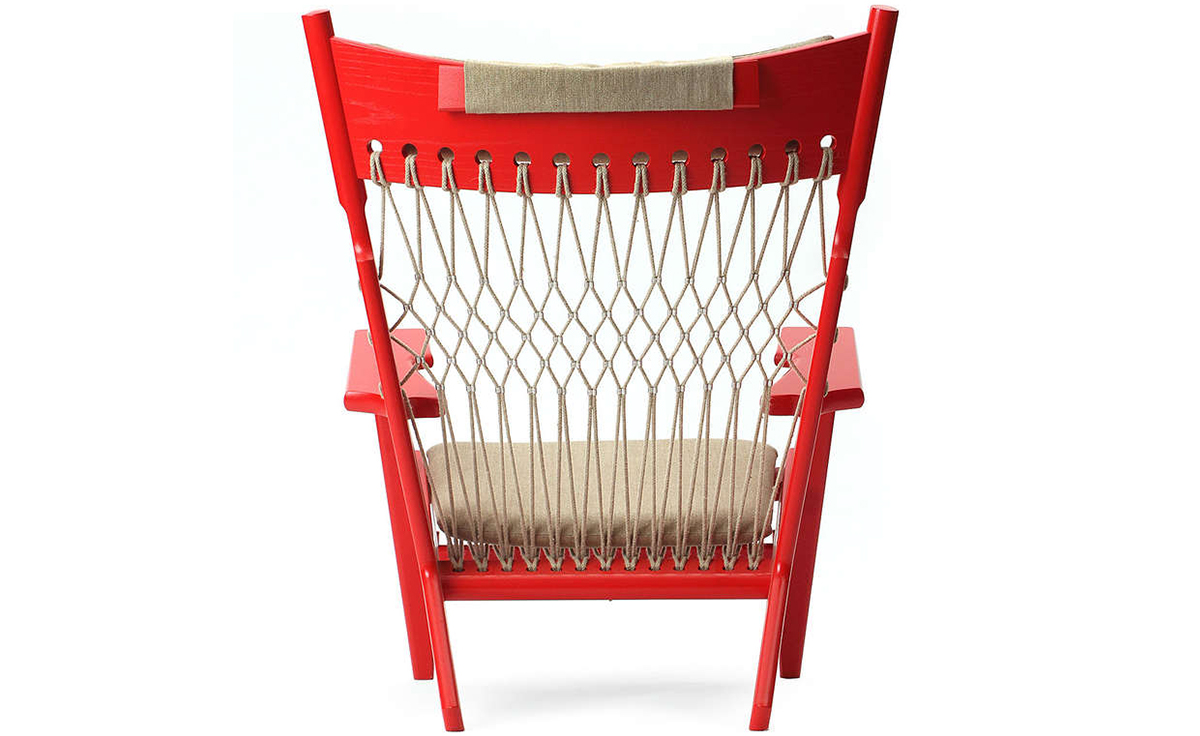 出富有表现力的安乐椅,实木作为主体,棉绳编织,麻布软布坐垫(内部填充优质海绵),这就是Web chair(网椅)。其顽皮和充足的扶手立即让人回想起Hans J.Wegner在塑造实木,体现不同理念的但坚持强烈舒适感的安乐椅上的喜悦感。Web chair(网椅)的设计也表达了Hans J.Wegner坚持艺术的完整性。"