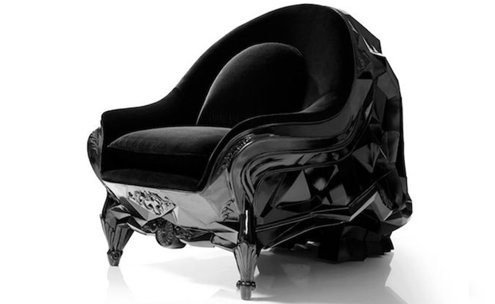 Skull Armchair(骷髅扶手椅)这是一款看上去有些邪恶的家具,它是由法国设计师Harold Sangouard设计的,适合所有喜欢这种款式的人。它会使人感觉很舒服,因为它符合他们阴谋险恶的举动。像电影或者游戏或者大恶棍复杂的巢穴。玛瑙椅子一面非常光滑舒服,一面是褶皱的几何图形的骷髅头。它是一款介于雕刻艺术和功能性家具之间的休闲椅,也是一个令人称赞的景观,椅子后面非常引人瞩目,这点有点类似Maximo Riera设计的动物造型的椅子。