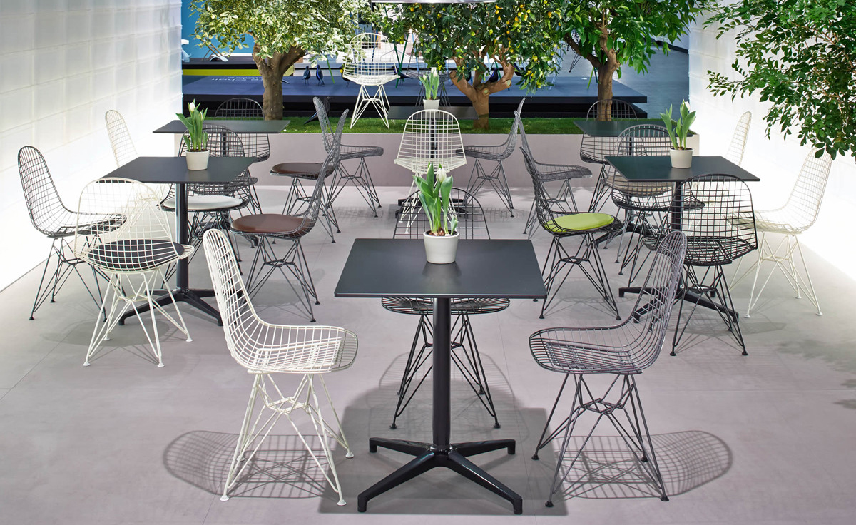 Charles & Ray Eames 1951 年發表的 Wire Chair 系列,以一片式有機網狀椅座,延伸變化出一系列不同椅腳及座墊搭配的單椅,這系列椅款輕巧透明的設計,在 60 年代可說是運用了當時最先進的技術來製作,靈感則是來自於鏤空的金屬收納籃,金屬條交織的椅座,彎曲的弧面不僅符合人體工學,在視覺上更具有穿透性。