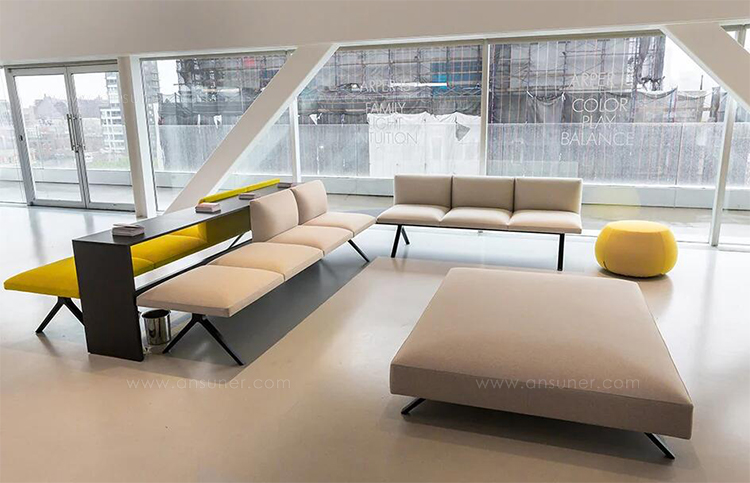 Kiik是一个模块化系统,由各种尺寸的框架组成,可与垫子结合,可提供或不提供63x63 cm靠背,座位高度为45 cm。Kiik桌子有不同的形状和尺寸(矩形、方形、三角形、四分之一圆形),因此允许线性和L形模块(120°和90°)。该系列的补充是一个控制台与252x40厘米的三个高度顶部:58,72 e 105厘米,和126x157.5厘米的座椅高度36厘米的搁脚凳。