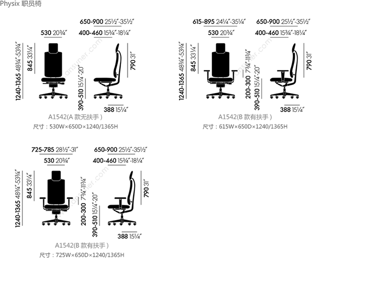 HeadLine 办公椅 系列尺寸/示意图