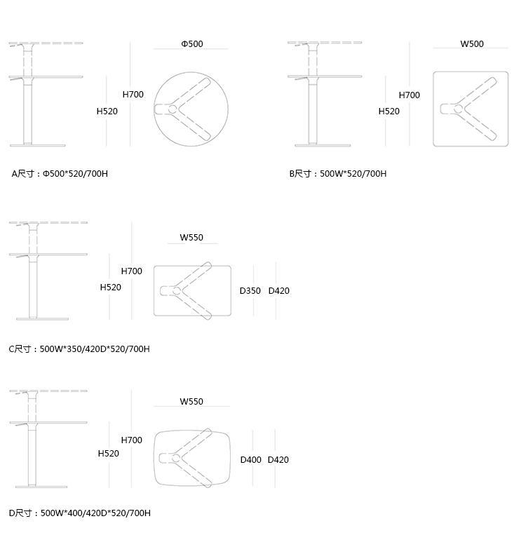 YO  茶几/边几 系列尺寸/示意图