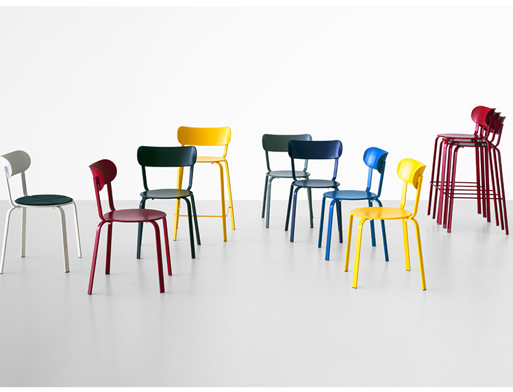 椅子和凳子- -小酒馆机型,STIL收集的光当代版本是一个非常时髦一项所述的单一材料,金属和明亮的颜色的播放允许无数组合和组合物。