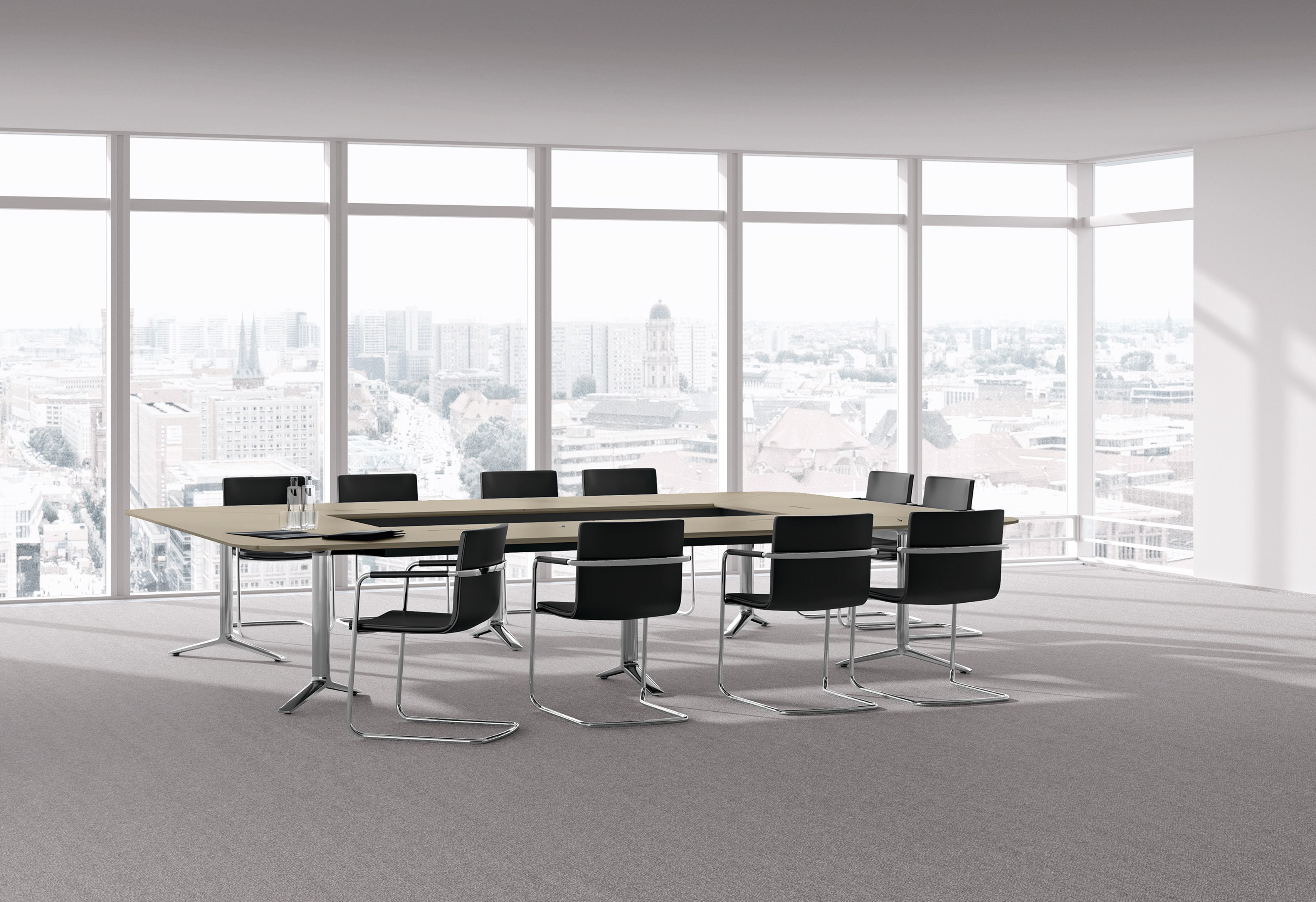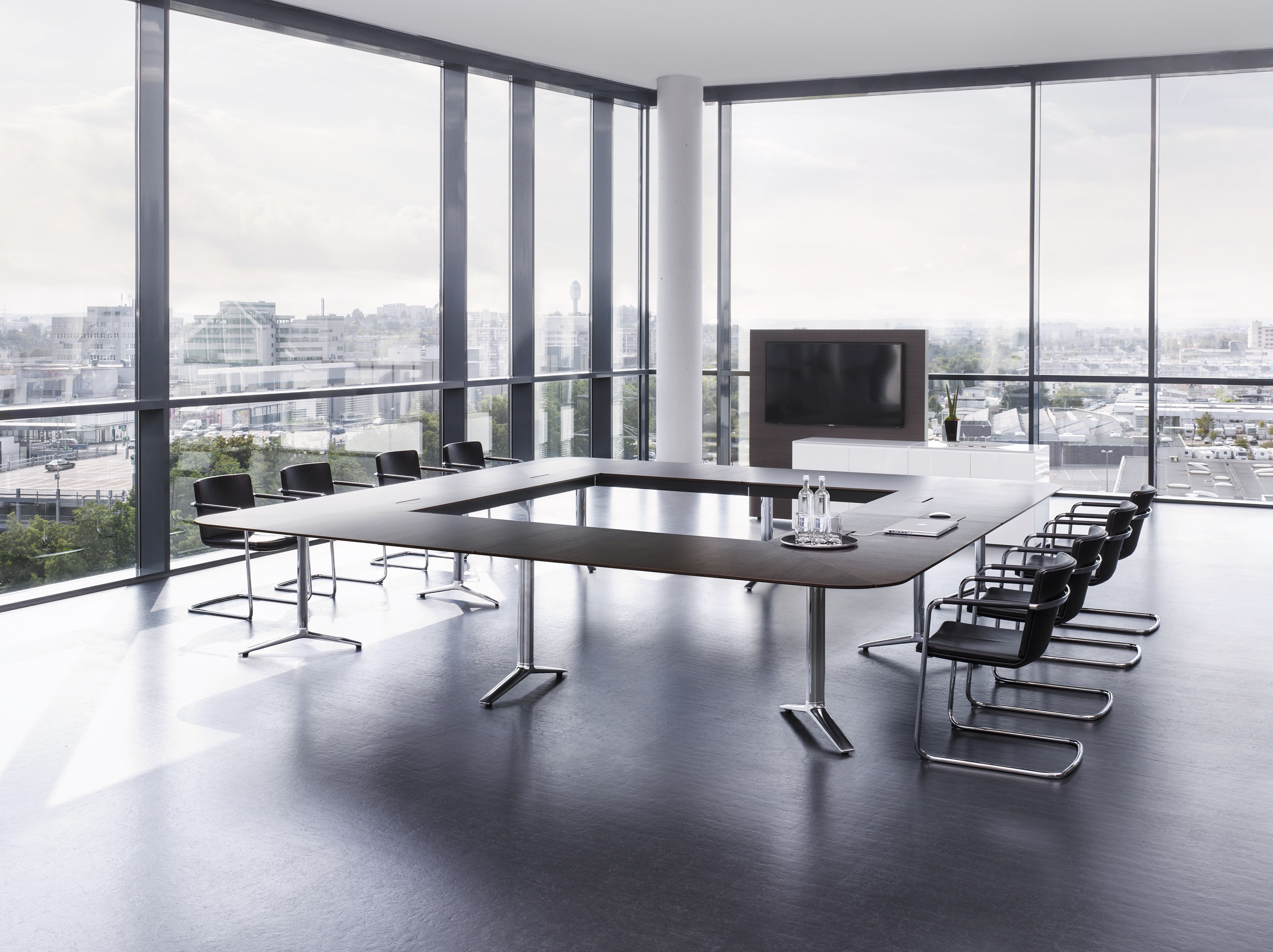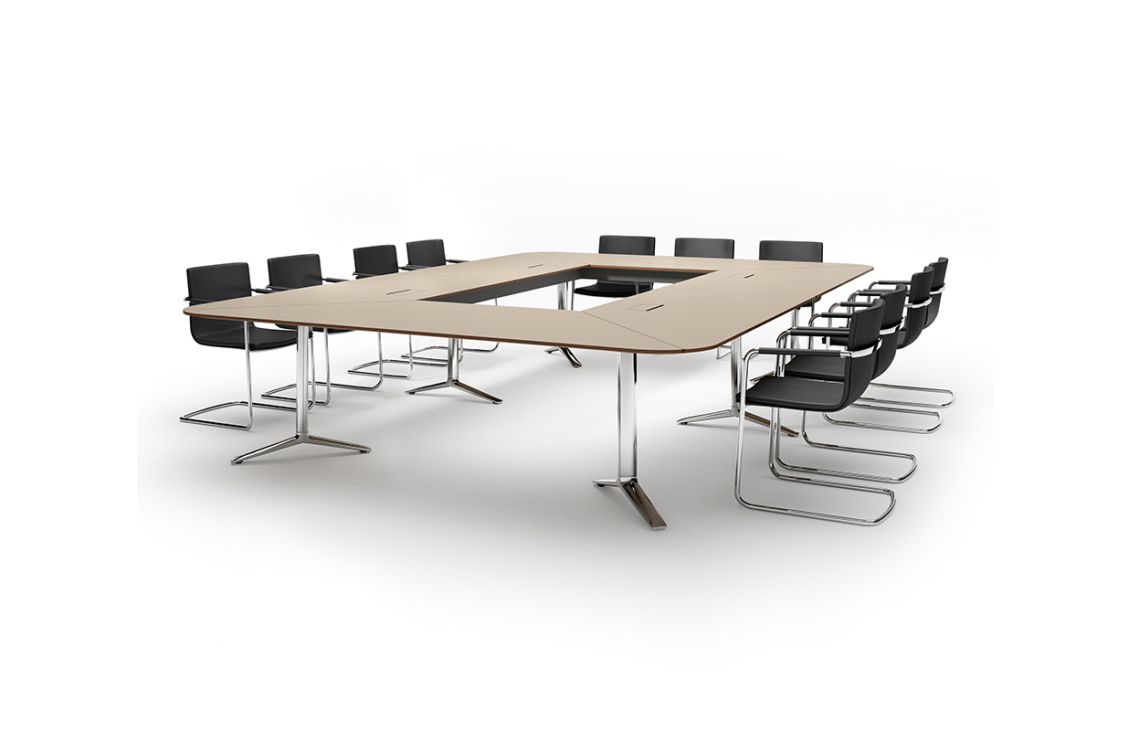 Talk会议桌,由德国著名设计师组合Markus Jehs与Jürgen Laub共同完成。纤薄的桌面,抛光镀铬铝合金桌脚。简洁有力的设计外加精湛的工艺,令它们每个细节都焕发出无与伦比的设计美。