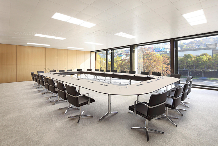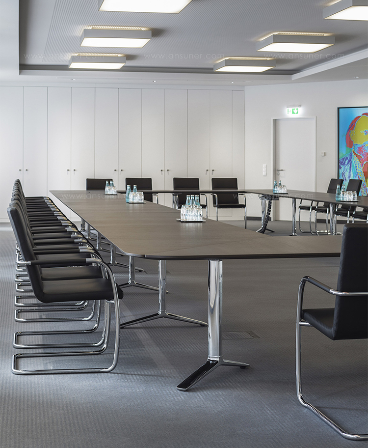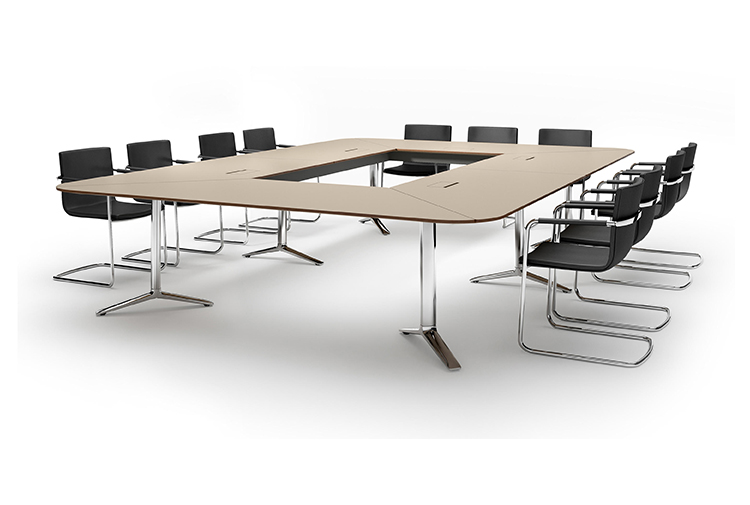 TALK会议桌的台架结构除了保证稳定性,以及最大化的腿部空间之外,它还能实现相邻两块桌面的巧妙连接。不仅如此,所有拼装和拆卸均无需任何工具,方便快捷。Talk系列应用广泛。无论会议、洽谈或培训,均可利用其高度模块化的整体结构与极强的空间“自适应性”,构建出不同的组合方式,以满足客户需求。
