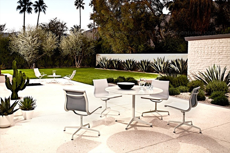 Charles与RayEames夫妇是20世纪最有影响力的设计师,卓越的设计涵盖了家具、建筑、影像与平面设计。他们从二次世界大战中美国海军的实验计画中学习经验并发展可谓是现今工业中使用模铸胶合版的先锋,这对设计界的超级夫妇档自1940年参与了由MOMA举办的有机家具设计大赛,自今已有近百件他们的作品被各大博物馆所永久典藏。 Eames® Soft Pad Side Chair(伊姆斯软包会议椅)是夫妻俩1958年设计的,是在全铝系列的基础上发展的另一系列Eames产品。舒适系列在全铝的椅架上增加了皮革制的柔软坐垫和靠背,高级铝合金制作,压模四星脚,可旋转。背垫和坐垫,采用西皮,具有透气性强,内部填充高密度定型绵,不易变形,不老化,依人体坐姿,符合人体工学,耐水及对人体无害等优势。椅子扶手选用优质电镀铝合金扶手,手感舒适,永久不生锈。转椅底盘为多功能底盘,可以保护使用者长时间坐用腿部健康,且作为高度可多定位调节。气压棒采用的气杆是正规厂家出产的外贸气杆,每一根气杆都有钢印,经过严格SGS检测的才可出厂,旋转、升降自如基本无声响,使用寿命长,可承受250kg,可升降数万次,将椅面调至与膝盖同高时,使用者坐下后双脚跟可垂直平放于地上,且大腿与地面平行,最符合人体工学理论,使用者长期久坐,也不想疲惫。办公椅脚为铝合金材质永久不生锈、承受能力强,安全更放心。椅子脚轮采用优质电镀片脚轮,耐用而美观,可以随意变换位置,贴心更方便,具有防震及防松脱,让椅子的安全性能更加可靠。