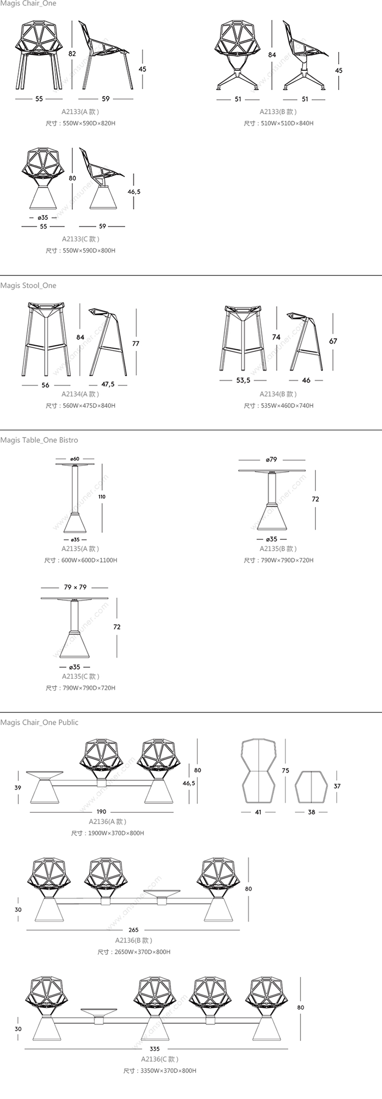 Magis 系列尺寸/示意图