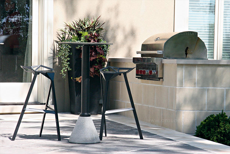 一个露天小餐馆是您阳台、露台或甲板上开胃小菜和开胃小菜的理想选阳极化铝框架和高压层压板顶部为黑色。混凝土基座有一层透明的涂层。