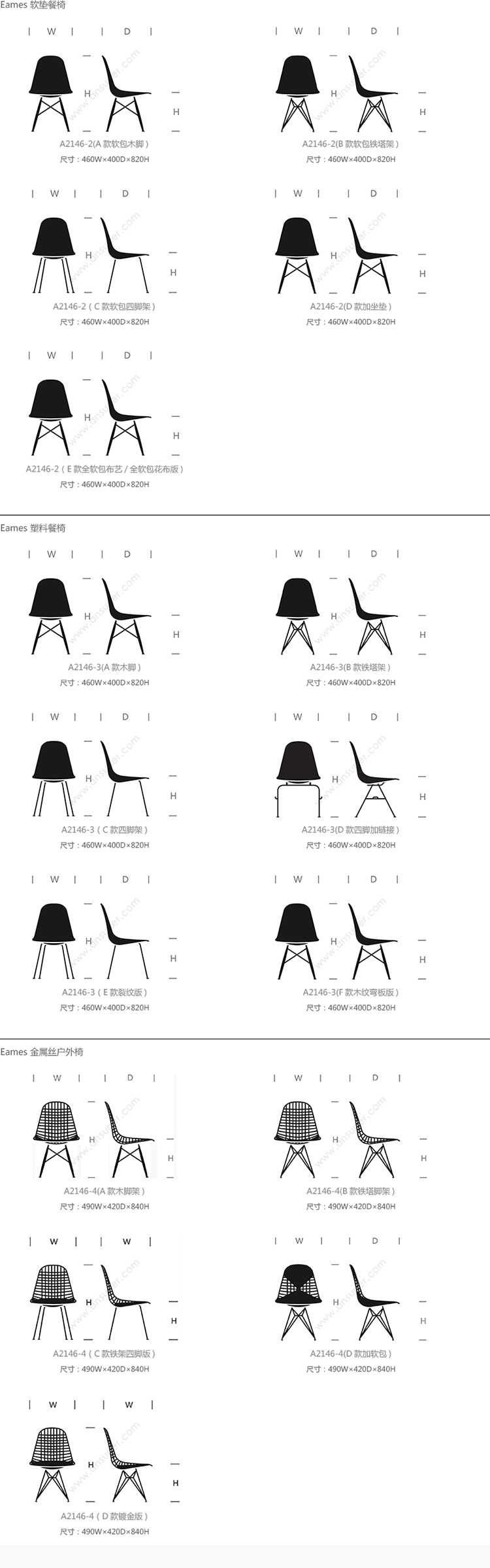 Eames® 系列尺寸/示意图