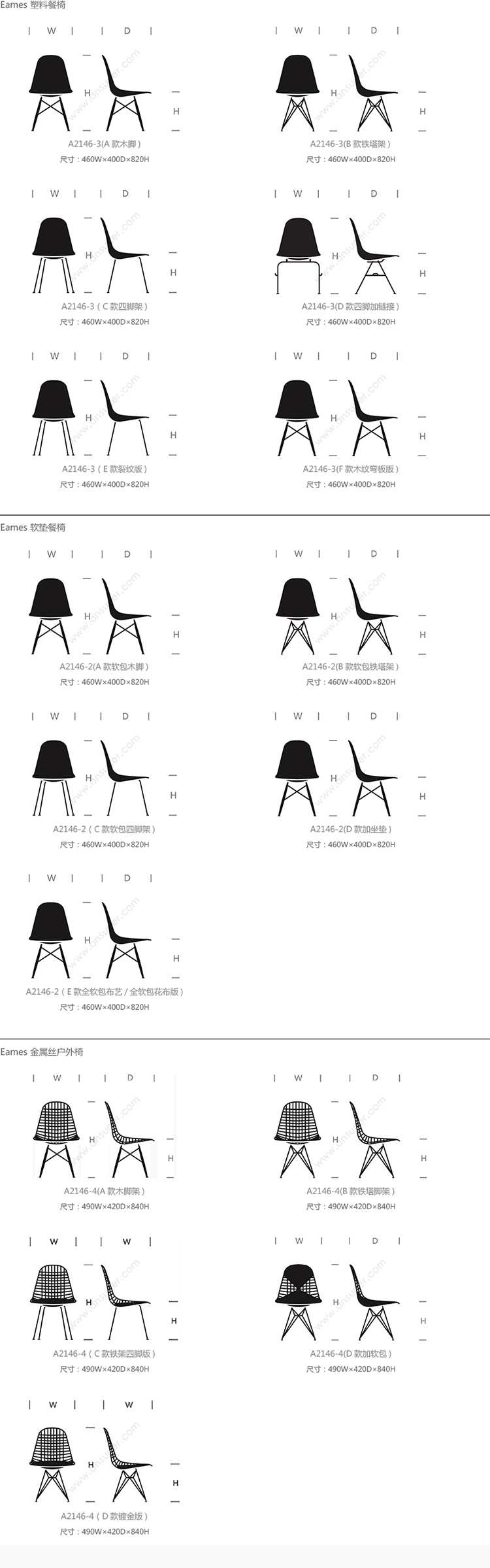Eames® 系列尺寸/示意图