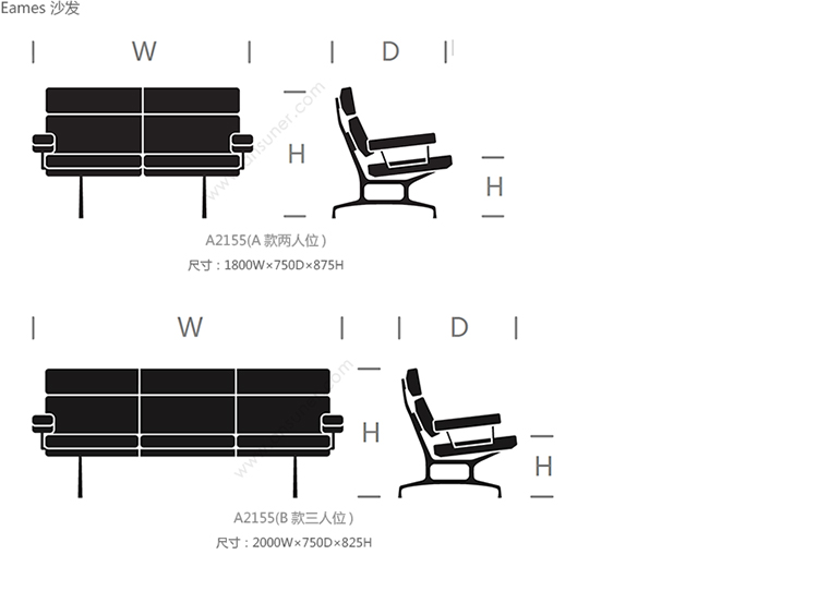 Eames 系列尺寸/示意图