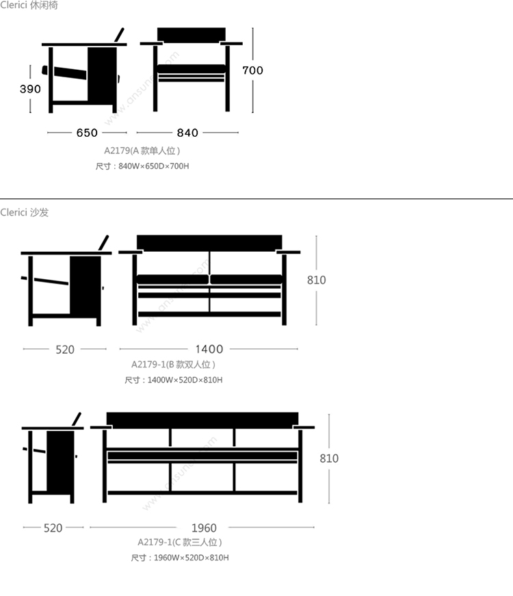 Clerici 系列尺寸/示意图