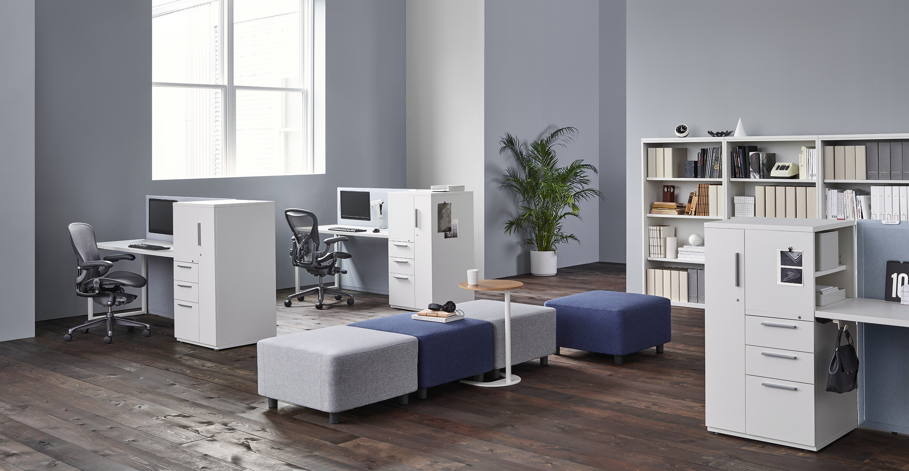 Pari是一个屏幕系列。 有些版本是独立式的,有些版本是贴在表面或框架上的,所有版本都是可粘的,并且共享无框架,薄的外形。 它们一致的细节和互补的颜色有助于美学的连续性,因为它们描绘了空间并提供了隐私。 Pari Screens与许多Herman Miller产品兼容,可在办公室环境中进行设置。 使用Pari Screens,组织可以压缩工作站并在较低的墙壁高度进行标准化,而不会牺牲员工所需的隐私,以便他们可以集中注意力,或创建个人空间的边界让他们感到舒适。