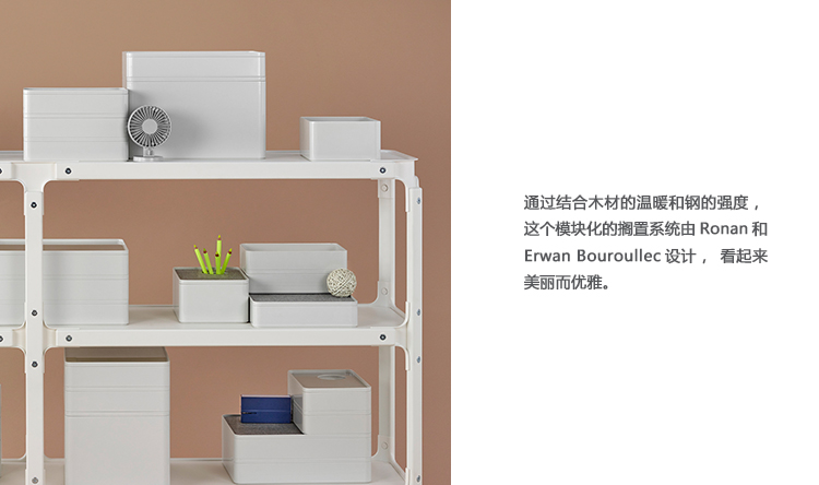 通过结合木材的温暖和钢的强度,这个模块化的搁置系统由Ronan和Erwan Bouroullec设计,看起来美丽而优雅。英俊,友好,耐用,它的多功能设计组织和存储项目一样在随意的场合,自信地就像在优雅的场合一样。