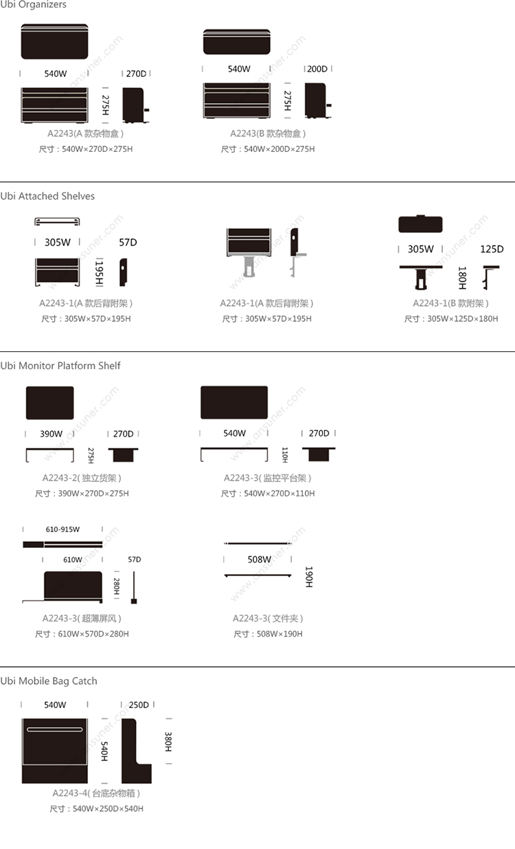 Ubi Organizers 系列尺寸/示意图