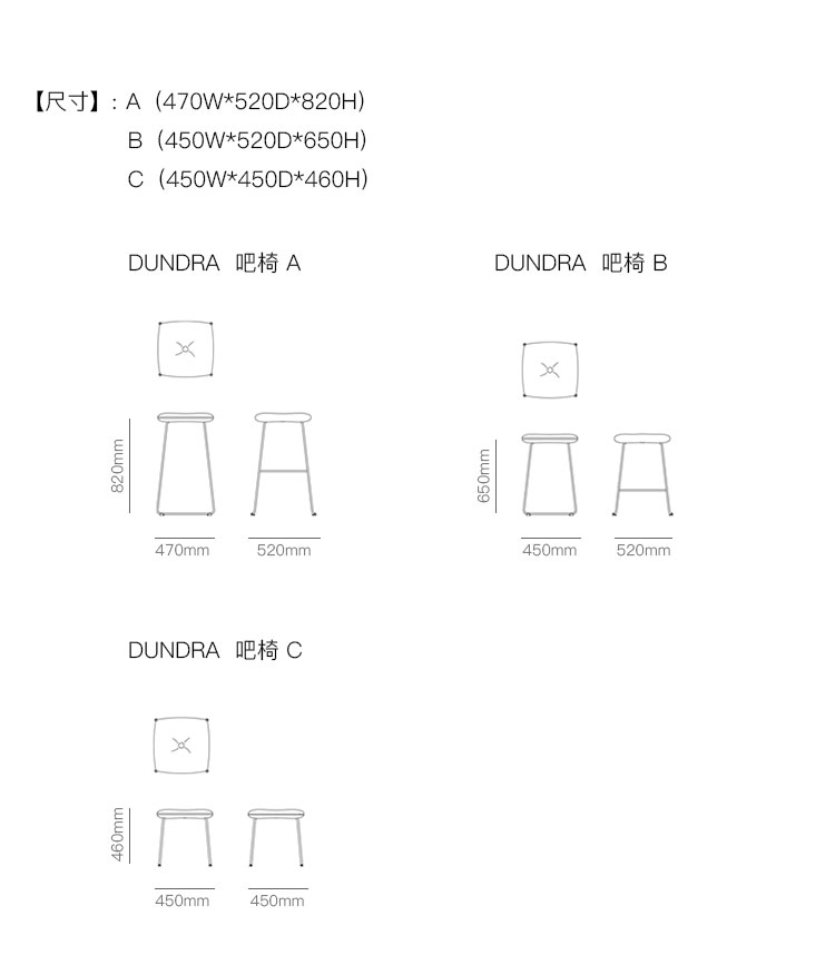 DUNDRA  吧椅 系列尺寸/示意图
