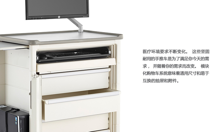 医疗环境要求不断变化。这些坚固耐用的手推车是为了满足你今天的需求,并随着你的需求而改变。模块化购物车系统意味着通用尺寸和易于互换的抽屉和附件。