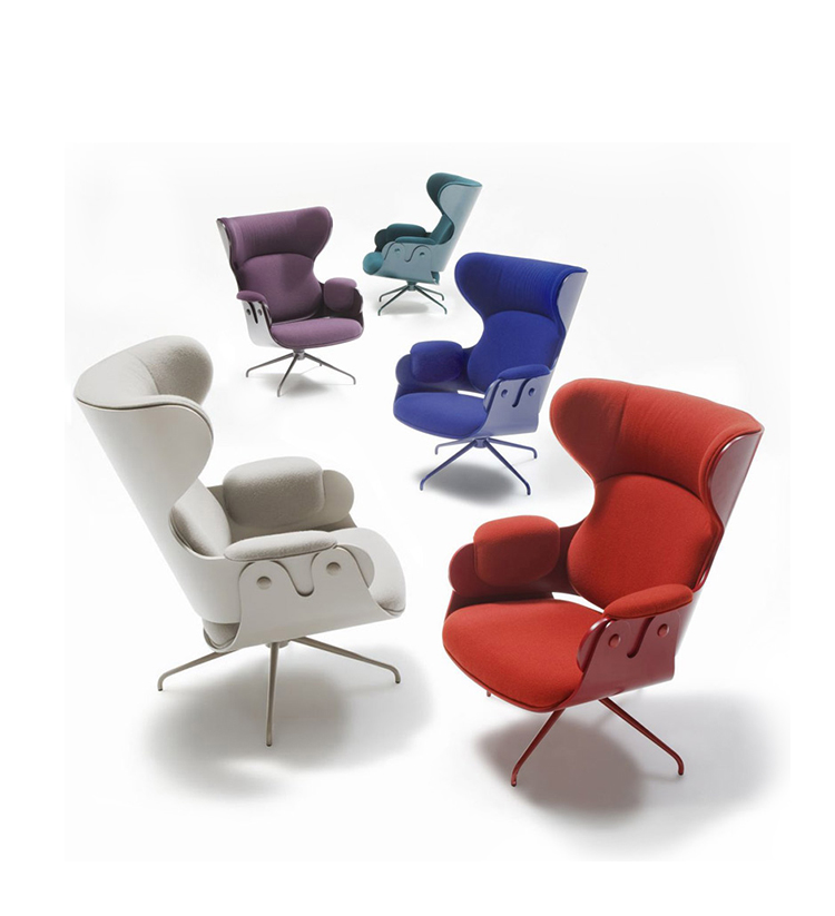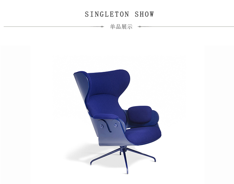 西班牙设计顽童 Jaime Hayon 2010 年在米兰家具展上再次吸引所有人的目光,Jaine Hayon 与西班牙家具厂牌 BD Barcelona Design 合作的 Showtime 系列家具自推出后俨然成为Jaime Hayon 个人的经典代表作,在 2010 年加入了新成员 Showtime Lounger 休闲椅,当中似乎不难发现有着 Charles & Ray Eames Lounge Chair and Ottoman 的影子,重新诠释这张20世纪经典椅款 Hayon 对设计大师致敬的同时,也注入更多 Hayon 幽默诙谐的设计手法。 Showtime 系列家具主要使用的材质和构造包括:优质夹板压模贴木皮而成、进口头层牛皮或进口羊绒布、内部填充高密度海棉、优质铝合金脚架。