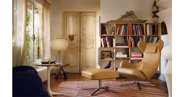 grand repos lounge chair and ottoman(grand repos 休闲椅&脚踏)由设计大师Antonio Citterio所设计的独特的,绝无仅有的休闲椅系列,椅子的创作面临的挑战如同伊姆斯夫妇当初设计著名的伊姆斯休闲椅一样,但正因如此,才能成为绝世经典。grand repos系列休闲椅采用钢制铝合金脚架、聚氨酯海绵填充、高级布艺扪面,可随意调整坐姿和高度,也可以放平躺,配上舒适的羽毛衬垫,无论阅读或者休憩,都非常舒服,符合人体工学,高档舒适,是办公,会议的理想选择。意大利设计师和建筑师 Antonio Citterio赋予了这边椅子永恒的优雅气质与无与伦比的舒适,是当代设计的经典,无论用在办公、商业、家庭都是非常高贵大气的。
