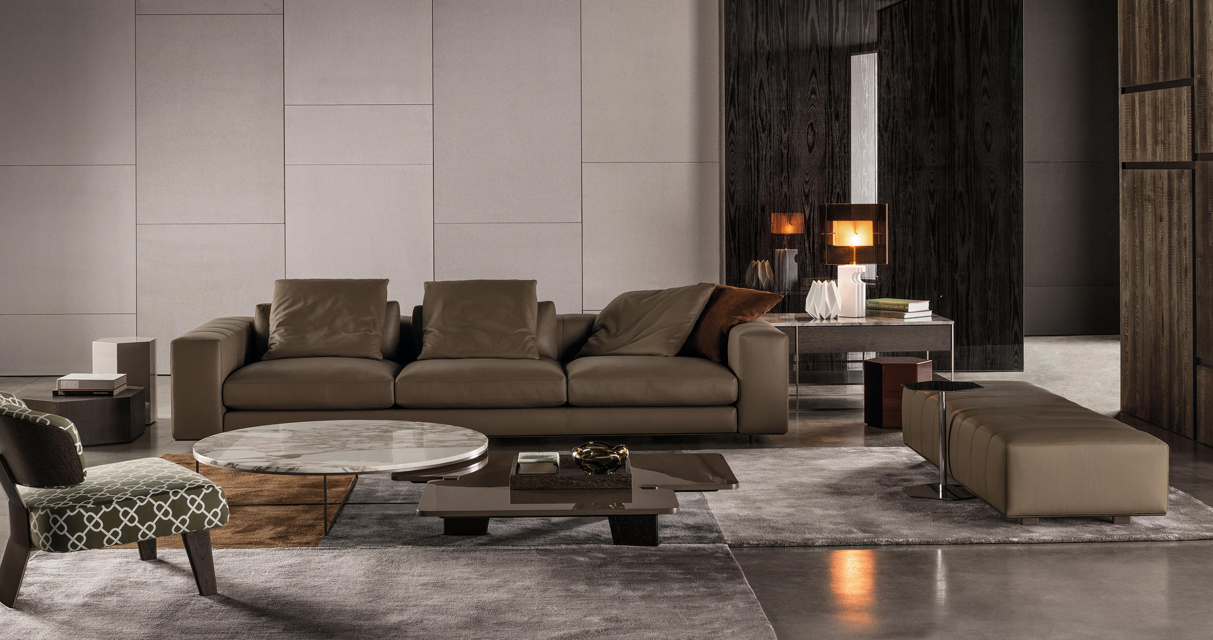 六边形棱柱的多面反光特质让人心动不已,完美呈现四款精致漆面的光泽:Corten色、青墨色、Sand色和灰褐色。在木制版本中,Aeron通过天然名贵的米灰色鲍迪豆木饰贴面来展现出其迷人的材质魅力。Aeron边几有多种尺寸可供选择,不仅造型极具创意,还可以与系列中的其他产品组合搭配出饶有趣味的效果。