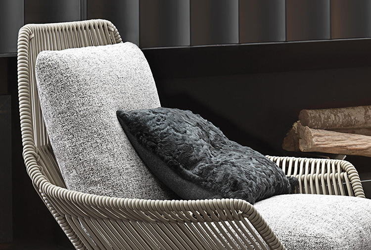 除去了2012年原版的填充物后,王子的“绳索”在室内展示了外壳的骨架,现在它的特点是由皮革覆盖的管状弦交织在一起。 设计灵感来自五十年代的美国现代主义,强调了锡色铝基通过复杂的压铸技术实现。扶手椅的柔软度由织物或皮革装饰的坐垫和靠垫突出。 米诺提产品的优势之一是对细节的剪裁讲究,这一点在圆形轮廓线的执行中得到了突出体现。圆形轮廓线的特点是贯穿整个皮革长度的独特接缝。王子的“绳索”室内有四种颜色——鸽灰色、灰色、烟草和深棕色——扶手椅可以有一个脚凳,上面有相同的风格标志。