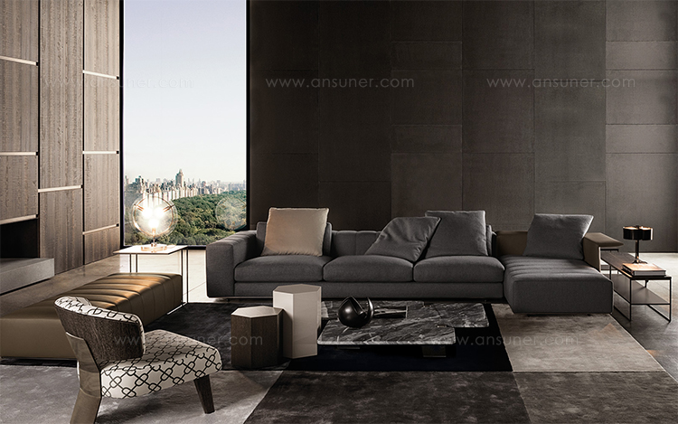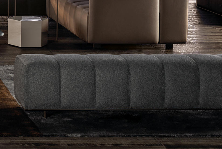 弗里曼“裁缝”项目的理念和原创性在其衍生系列弗里曼“休息室”中也有所体现。弗里曼“休息室”沙发纵深度有所降低,不仅更易搭配较小的居住空间,还可以用在接待场所,如等候室、前台区域、行政办公室。单组沙发的特点在于采用规则图形纹样的优雅缝线设计,可以自由随性地组合沙发,打造灵动的造型。“Wing”扶手拥有轻盈的线条,这要得益于采用聚氨酯为基材的泡沫金属框架。精致的包覆材料展现出公司运用复杂面料进行剪裁加工的实力。皮革和织物面料的各个部件通过浅铜色人造皮革束带和双缝线工艺连接在一起,打造出独特的纵深效果。