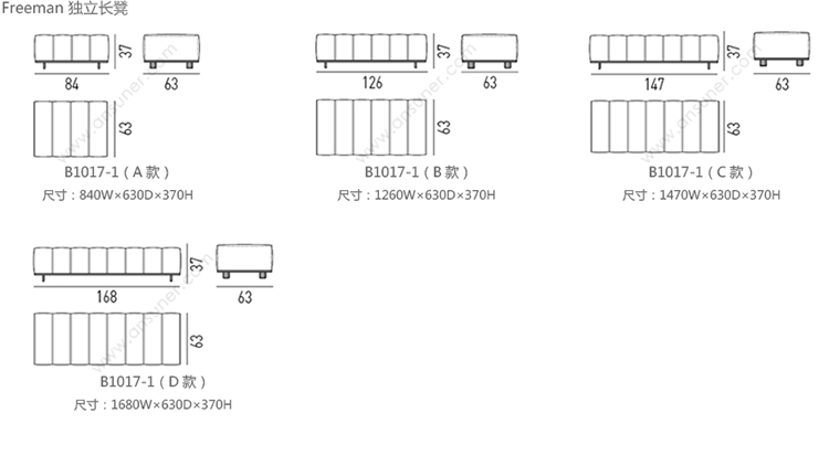 Freeman 独立长凳 系列尺寸/示意图