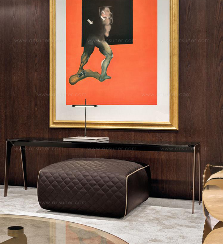以精美梣木底座致敬传统黑檀木艺术,搭配拥有圆滑转角与柔和饰边的光泽漆面黑檀木、黑色脱蜡琉璃及 Marron Damasco 大理石台板。