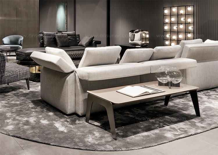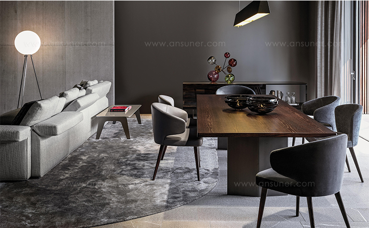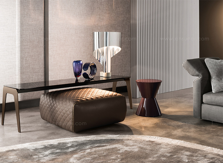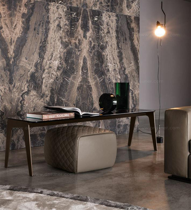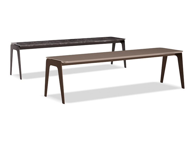Kirk 木质底座茶几统一以矩形呈现,有三种长度可选。