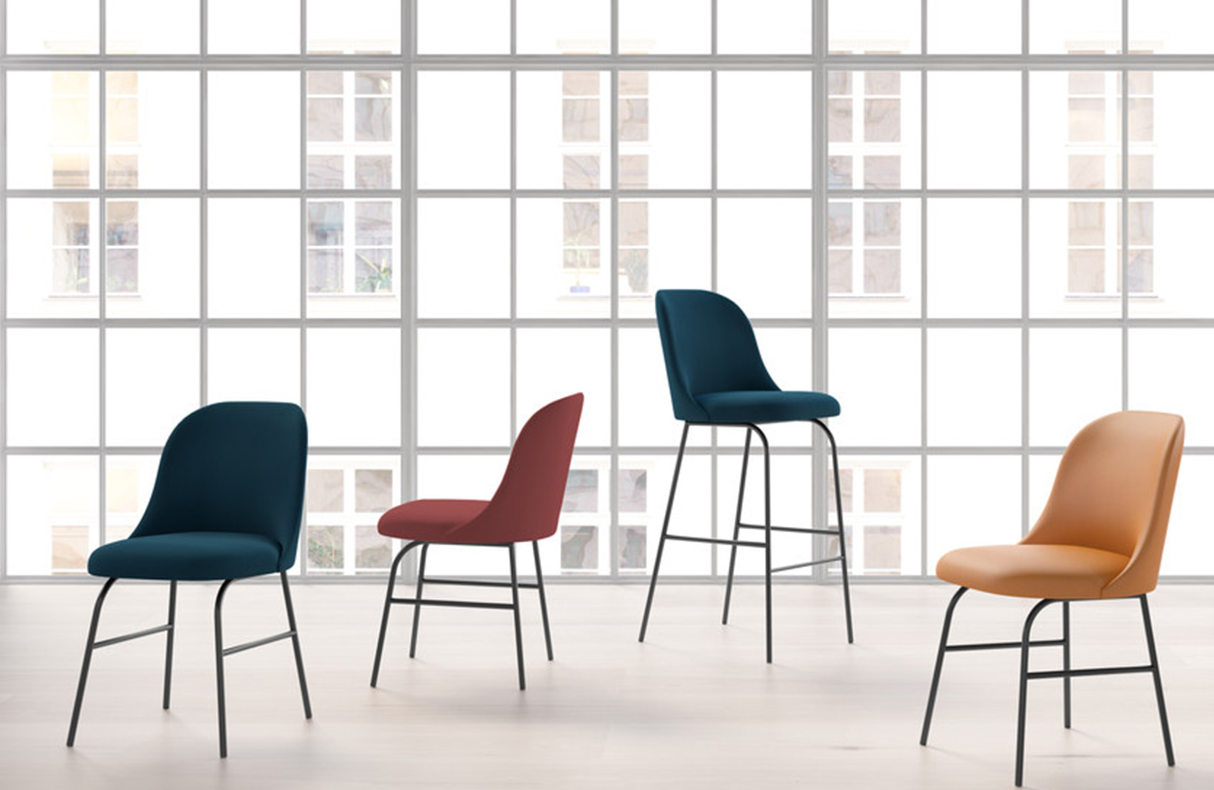 收集的设计和创建用于在诸如餐馆,酒店或办公室的公共空间以及居住空间。组成的椅子和凳子腿部结构的微妙细节和朝向靠背的连续运动反映了Jaime Hayon的个性和特征。