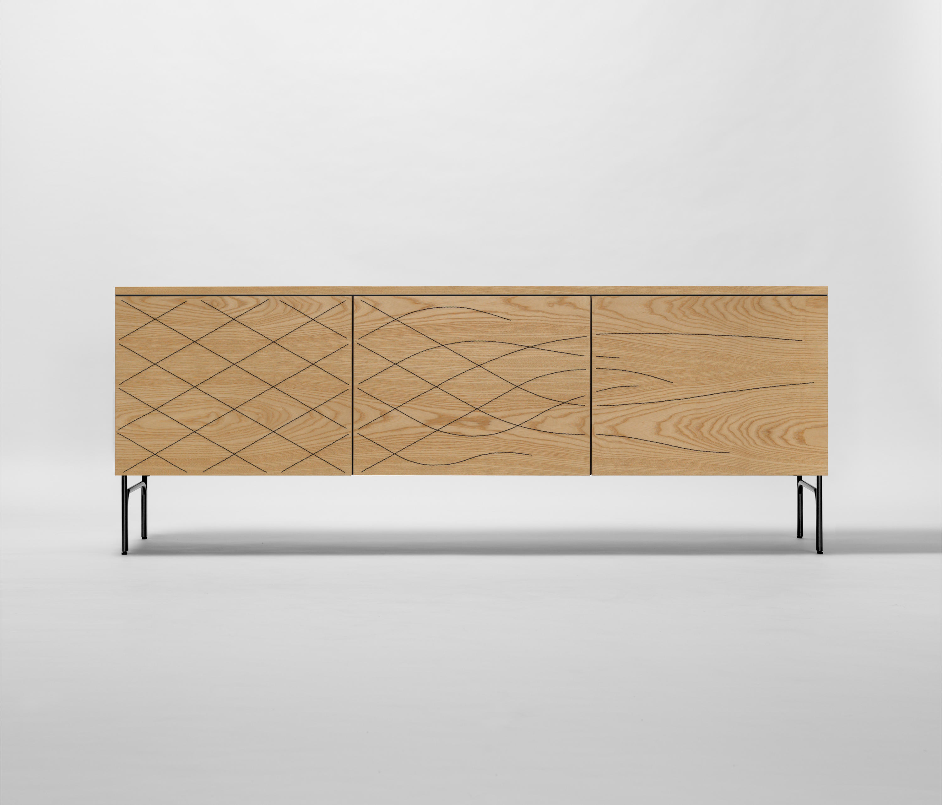 法格与布兰奇(Färg&Blanche)设计了一款功能齐全的柜子,带有简单的装饰图案。提供天然木材或黑色染色,并缝有不同颜色的线。