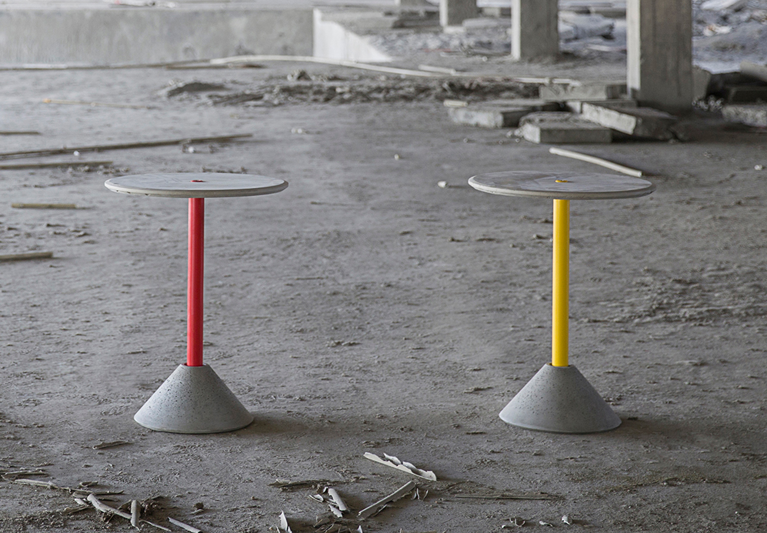 桌子底座与面板均为水泥,金属部分使用了不锈钢材料与防锈涂料处理,增强了使用的耐久度。 面板内含纤维网使其具有韧性并且增强了面板受力程度。水泥部分均可拆分,方便运输。