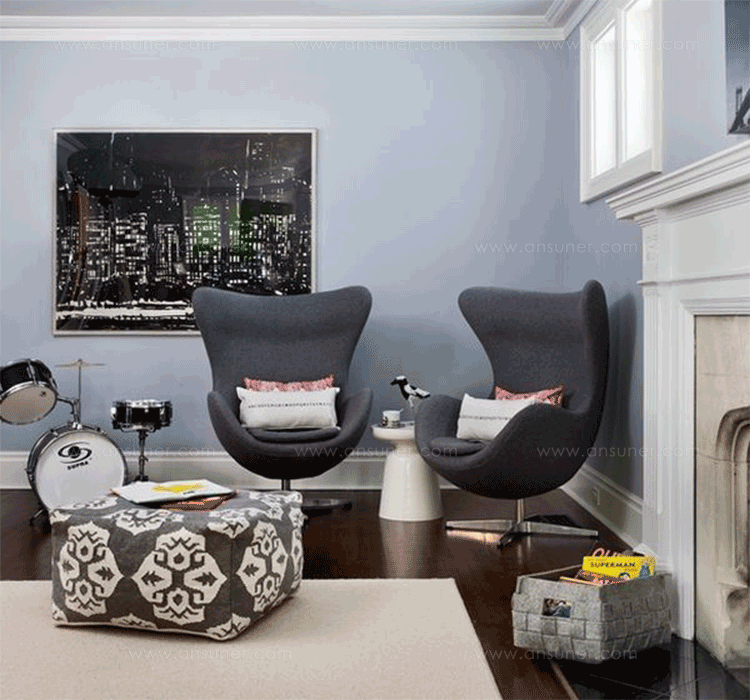 他将自身对建筑的独特见解延伸家饰品,并为一手绘制的建筑结构装点添色,因而摧生出如长着三只细腿的蚂蚁椅(Ant Chair)、蛋椅(Egg Chair)、天鹅椅(Swan Chair)、The Oxford chair等旷世之作,以及雅宅、工厂、展示间、织品、时钟、壁灯与门把等无计可数的多元创作