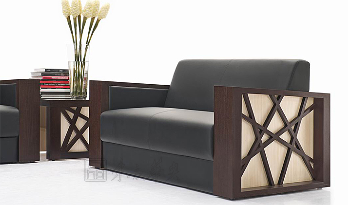 ※  由实木及真皮为主组合而成的该系列沙发具有稳重和得体的形格,扶手以包真皮实木框架构成;沙发侧部墙体连块状图案!