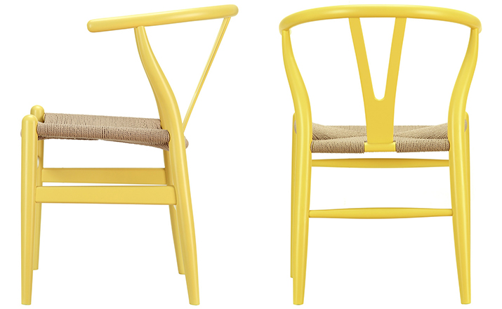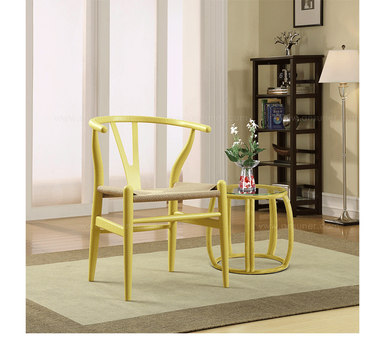 Y椅子是Hans J.Wegner最著名的作品。 它具有重量轻、有吸引力、舒适、中式风格等特点。 该款设计灵感来源于中国传统家具,四平八稳,古色古香,大气自然。上圆下方,浑然天成,深受中国顾客喜欢。Y椅关键在于是工艺与简约的设计,有着清晰的线条。 尽管椅子简约的外观要超过100个步骤进行。除其他事项外,手工编织座垫超过120米的线。 材料有丹麦硬木(橡木,榉木,水曲柳)以及北美硬木(胡桃木,樱桃木)等。外表可漆成各种各样的颜色。 垫子的座位可以添加额外的舒适。