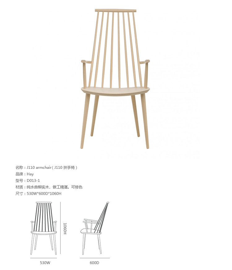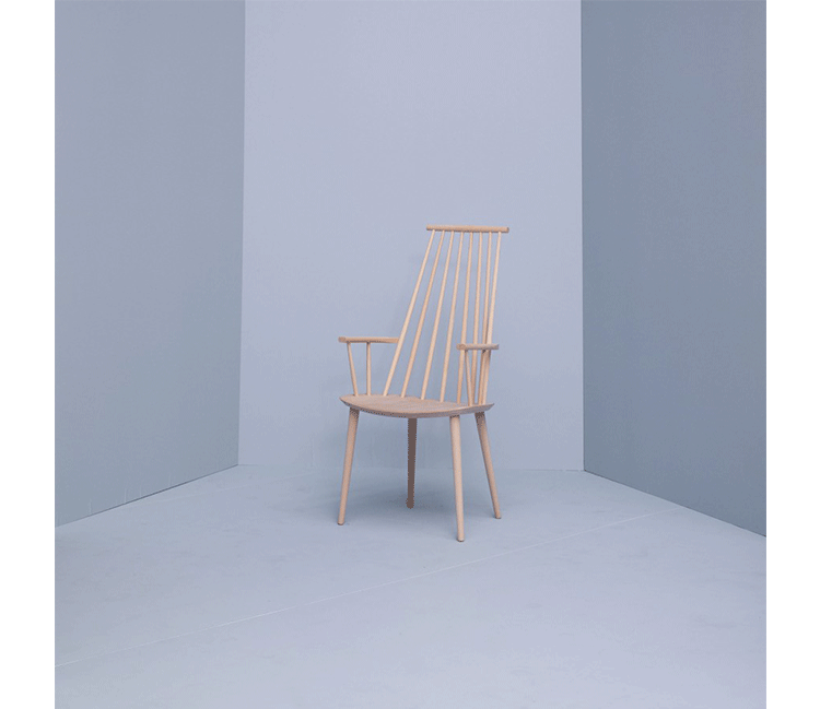 J110是由Poul M.Volther在50代所设计的三脚单椅,使用山毛榉原木制造,另有四种不同色彩黑、灰、白、珊瑚红可供选择。隶属于FDB系列的J110单椅,是HAY在 2011年推出丹麦精典家具复刻版系列之一,当年原本是为丹麦消费者合作社(FDB)所设计的产品。兼具实用和自由设计的概念,就是40年代FDB的家具产品核心概念,藉由规模性的生产,降低成本,FDB系列让设计家具在当时的丹麦不再那么高不可攀的遥远,FDB 系列不但价格亲民,同时兼顾制造的高质量,风味独具的设计更是历久不衰。经典的温莎式造型 (Windsor style),可以说是FDB系列单椅 - J77/J104/J107/J110共同的设计DNA,全木制的FDB系列单椅,椅背由多根直棂构成,通透利落的造型,带出有别于其他单椅的强烈视觉效果,通透的靠背设计,也让整体造型变得轻盈,但底部三只旋木椅脚由上至下向外倾斜挺立,具有轻巧而稳重的视觉效果。J110是FDB系列当中,唯一的一张三角单椅,并且有着造型别树一帜的三角椅面,体积较小却又舒适无比的J110不但适合商业空间或较小的居家空间使用,也适合与其他FDB系列单椅相互混搭,营造高低的层次效果。数十年过后,HAY决定重新生产的FDB系列,除了立基于HAY的品牌精神-期许让丹麦家具设计回归50、60年代的创新思考模式,并赋予崭新的当代内涵。也将FDB系列的经典延续,并且推广至全世界,让世人都能回顾,并且享受型能兼具的FDB。