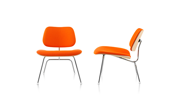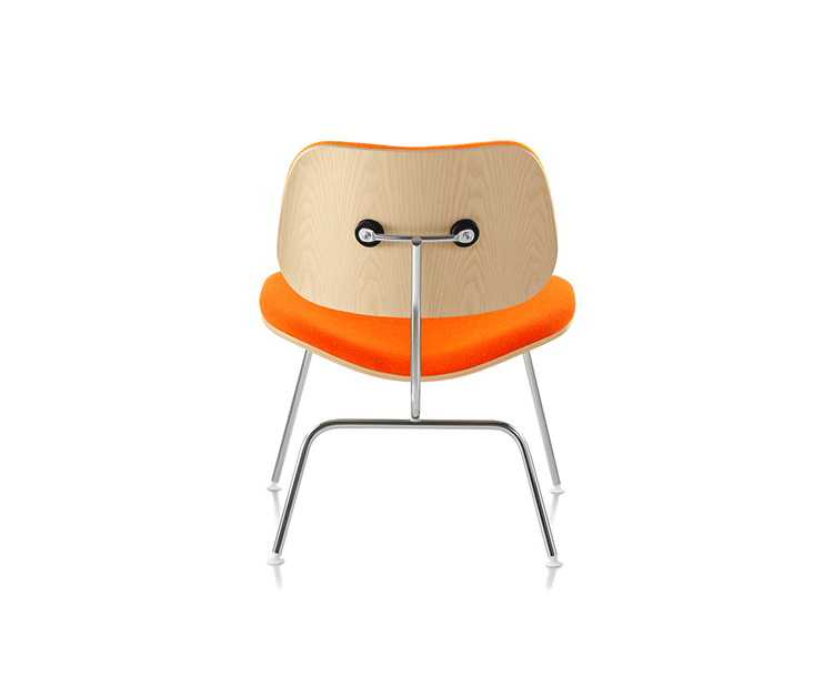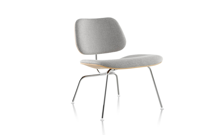 A refreshing variant of the LCM (1946), the Upholstered LCM sports Kvadrat Divina fabric on its front side. This iconic chair began as an experiment in the Eameses'apartment,where they were molding plywood in what they called the“Kazam! Machine.”The machine pressed thin sheets of wood veneer against a heated membrane that was inflated by a bicycle pump. Humble beginnings for what would become one of the world's most widely recognized and highly coveted chairs.Low-slung,with an expertly crafted molded seat and back(no bike pumps are used today),this chair cradles you in a comfortable position.Its form relates directly to the human body and holds no secrets as to how it succeeds technically.The slender rod base provides superior strength,while rubber shock mounts buffer against jarring movement.