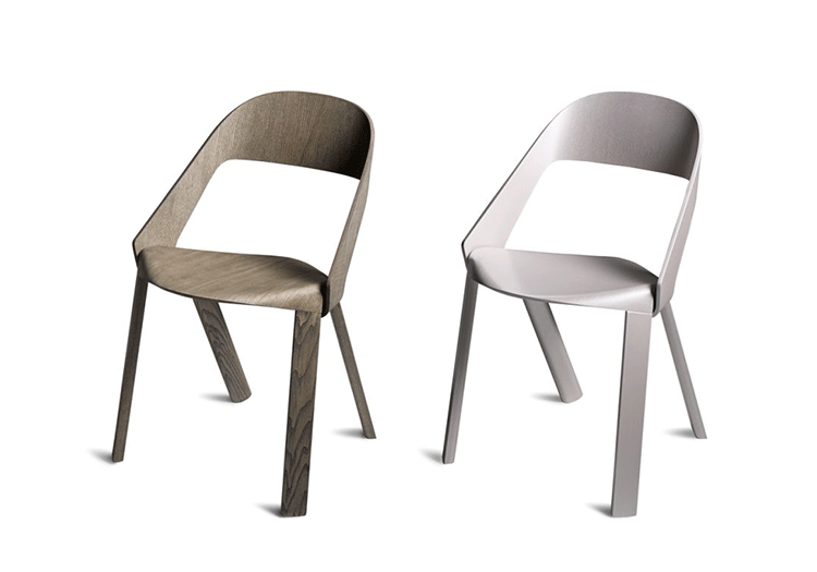 The chair’s design is simple and clear. The seat is bent down on four sides and holds the legs and the back on both outer sides.Molded plywood shapes the aesthetics of the chair.Pressing plywood into shape is an old technique that has seen a rapid development with the introduction of CNC milling technology in recent years.Complex molded parts can be inserted in milling tools and pressed directly with the plywood. This has opened new paths for shape and design.As with the chair Wogg 50,whose structural center is the core pressed in below the seat shell.