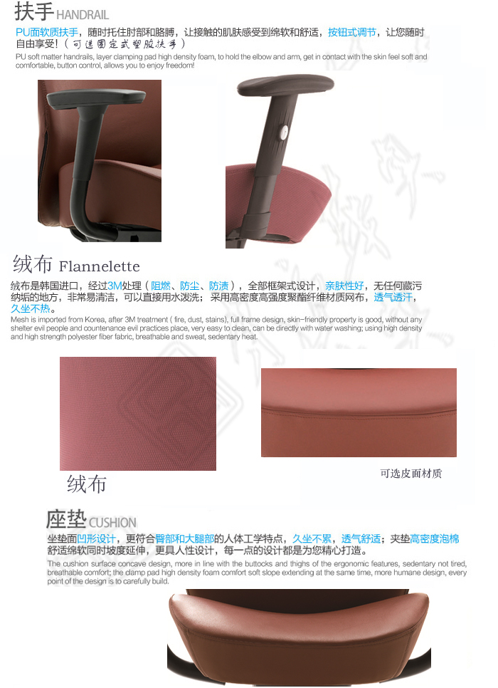 * PU扶手,可作升降,水平,前后调节