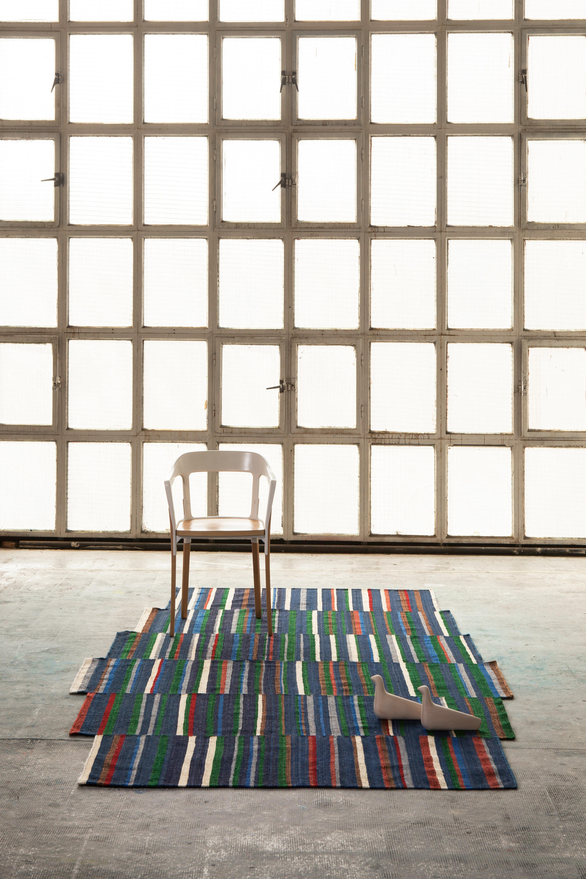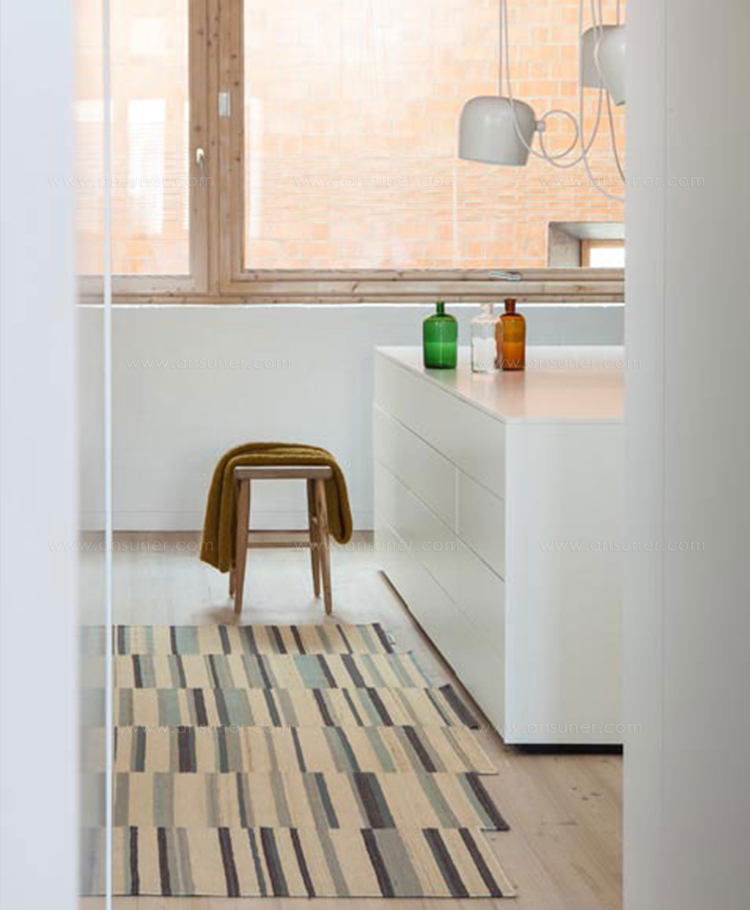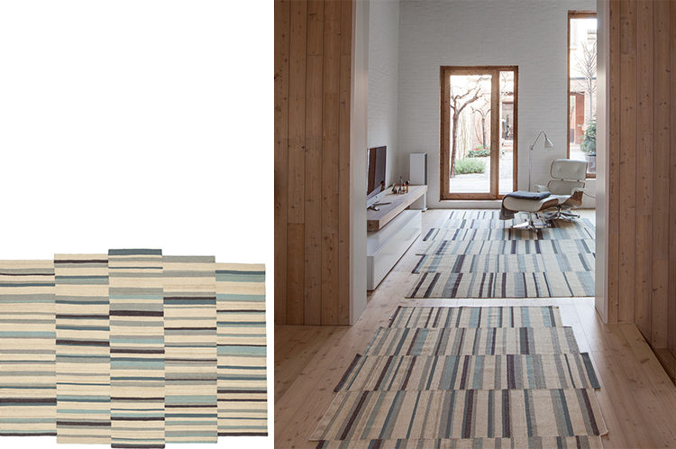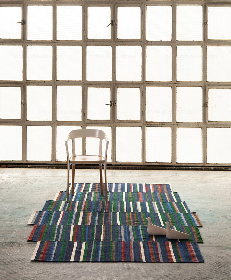 地毯通常被设计成一个图案分布的表面。然而,在格的情况下,模式被定义为一种生成地毯本身形式的建设性系统。彩色条纹的系统,在这种模式,形式和颜色以一种亲密的方式联系在一起,创造了一个不同的范围。——布洛埃克兄弟解释道。