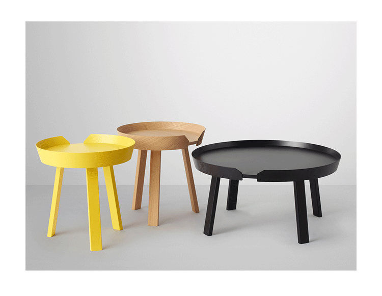 Around 边几/咖啡桌系列是丹麦设计师 Thomas Bentzen 2011 年发表的作品,结合简约外型与多样功能性,加高的桌缘设计减低桌面物品掉落的机会,是款相当平易近人的设计且容易搭配。设计师 Thomas Bentzen 在设计这款咖啡桌时说,希望可以寻求一种友好、优美的风格,这款小巧简单的咖啡桌很具有现代感,而且将不同尺寸多个组合在一起是个不错的选择。