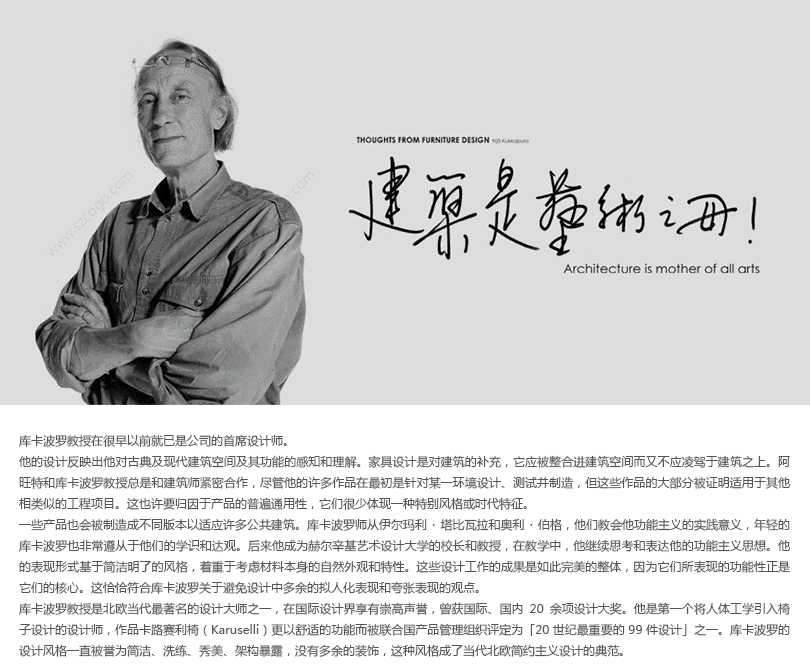 在70年代到90年代间,库卡波罗教授为许多国家进行了上百个礼堂的室内和家具设计,其使用范围十分广泛,从学校到剧院都能使用。通常,椅子的形式是库卡波罗和建筑师密切合作的结果,从而达到与整个建筑设计的充分融合。