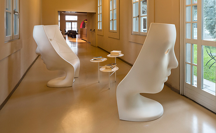 在2010米兰家具展上,意大利家居厂商Driade 推出了由设计师Fabio Novembre 设计的面具椅Nemo Chair。Nemo Chair 很高,足以把坐在上面的人整个都隐藏到“面具”的后面,让你有一种安全感的同时,其造型也极具希腊雕塑般的美感。