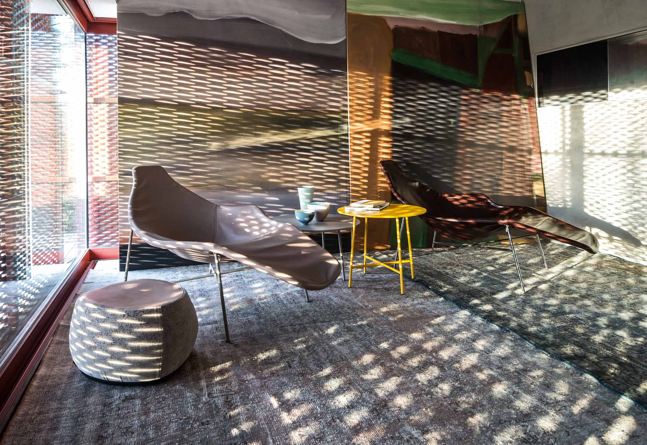 精心研究的设计始于框架、支架的质量。人体工程学决定座位的位置。获得舒适的两种互补方式:支持和包络。椅子和扶手椅在底座上有一个软垫外壳;而躺椅和扶手椅的盖子则直接固定在镜框上,这是一个用来支撑和引诱占领者的囊。这个名字取自于由咖啡和朗姆酒制成的加勒比海甜酒,是关于双重身份的,这是对一种对立的游戏的暗示。姿态既正式又非正式,扶手的对称和不对称,框架的棱角和曲线。所有的用途都是允许的:等待,休息,放松。