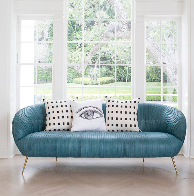 这款沙发的精致线条采用标志性褶皱皮革细节设计。 窑干硬木框架采用双榫和胶合,配有8向手工弹簧。 全面的蔬菜染色小羊皮手工缝制在框架上。 这款精致细腻的豪华沙发坐落在坚固的青铜铸造的锥形腿上。 完美适合厨房长椅,客厅或床边。