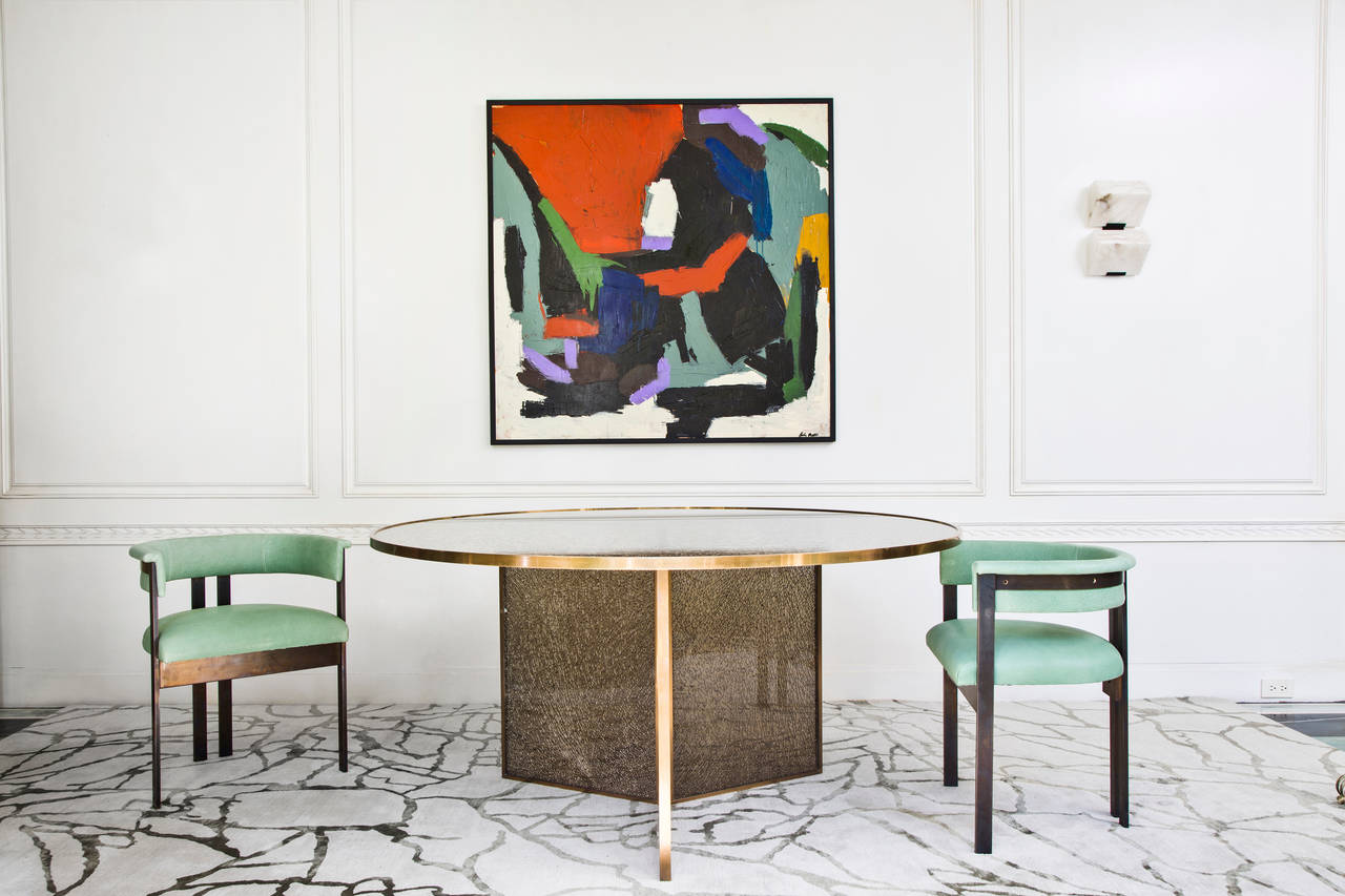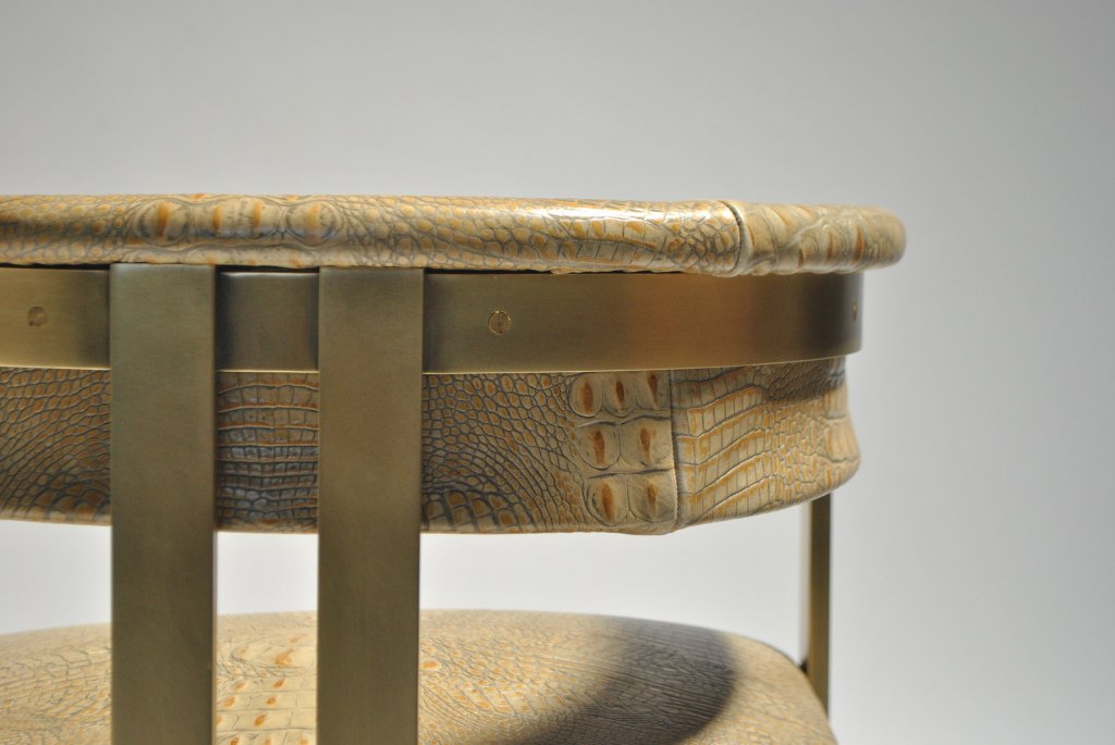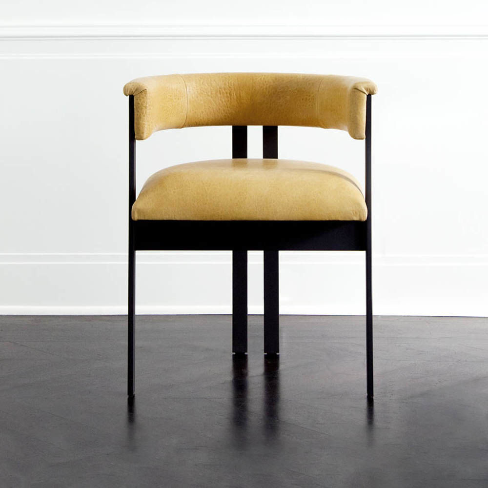 标志性的Elliot椅结合了简洁的线条和经典的乡土风格。这款餐椅或休闲椅的特点是配有一对黄铜吧台腿,要么是抛光黄铜,要么是油光锃亮的黄铜。 座椅有各种精选面料和皮革可供选择。