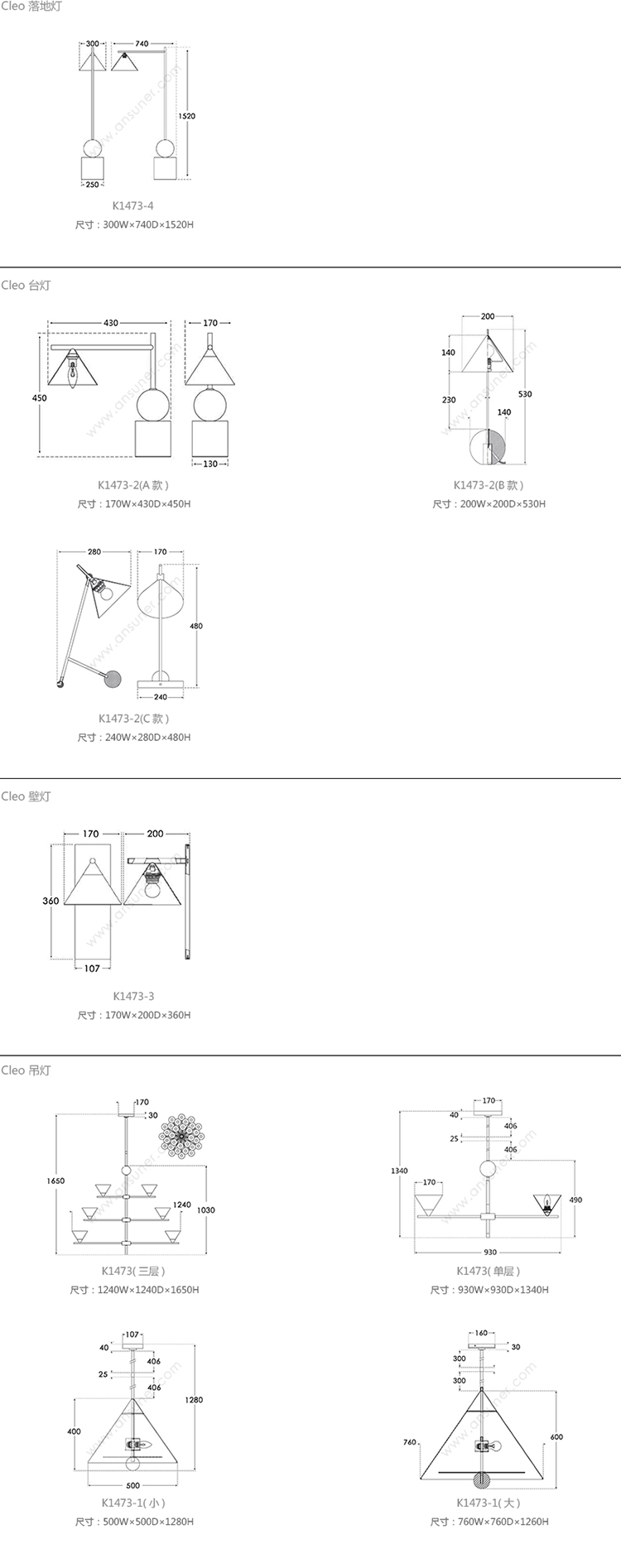 Cleo 落地灯 系列尺寸/示意图