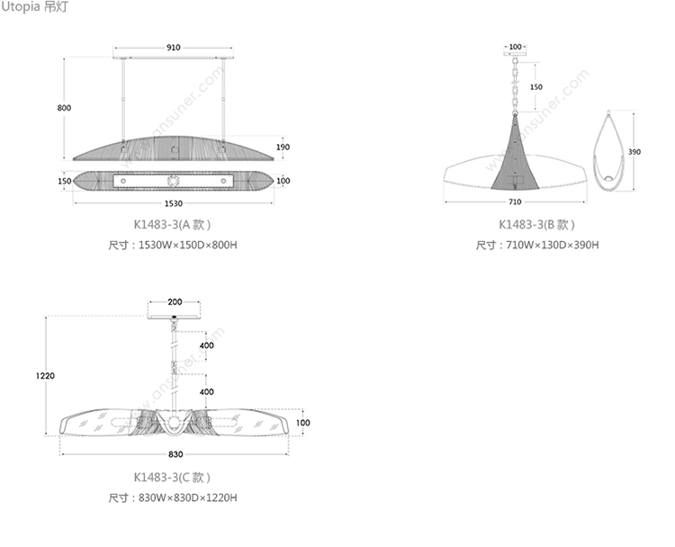 Utopia 吊灯 系列尺寸/示意图