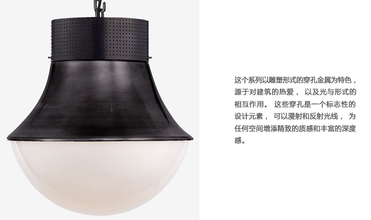 这个系列以雕塑形式的穿孔金属为特色,源于对建筑的热爱,以及光与形式的相互作用。 这些穿孔是凯利实践中的标志性设计元素,可以漫射和反射光线,为任何空间增添细腻的质感和丰富的深度感。 提供古董抛光黄铜,青铜和抛光镍与云雾玻璃。